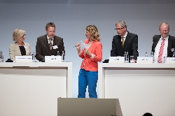 Nach einem Einführungsreferat der zuständigen Bundesministerin Ursula von der Leyen erfolgte eine Podiumsdiskussion zum Thema „Fachkräftepotential im SGB II - Chance oder Widerspruch“. Im Rahmen dieser Podiumsdiskussion stellte der Erste Beigeordnete und Werkleiter des Jobcenters Spree-Neiße, Herr Hermann Kostrewa, die vom Landkreis erfolgreich durchgeführten Qualifizierungsmaßnahmen für Erzieher, Altenpflegehelfer sowie für Gesundheits- und Krankenpflegehelfer vor. Wesentliches Ergebnis der Veranstaltung war es, dass es unter dem Gesichtspunkt der demografischen Entwicklung und des einsetzenden Fachkräftemangels gilt die Qualifikationspotentiale der SGB II-Empfänger zu erschließen und für den 1. Arbeitsmarkt zu nutzen. „Hierzu bedarf es insbesondere auch für die Optionskommunen eines entsprechenden Freiraums bei der Anwendung der Instrumente um situationsgerecht auf die Anforderungen Vorort reagieren zu können.“ betonte Hermann Kostrewa.