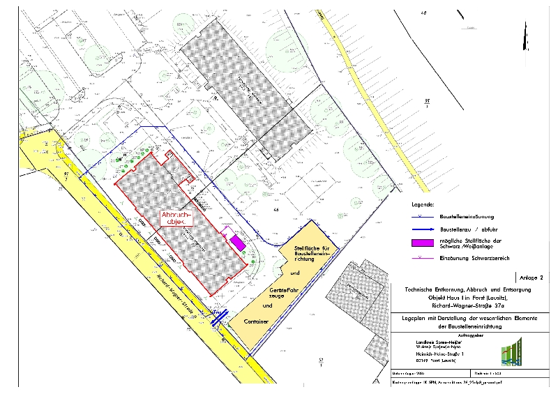 Eine Übersicht über das betreffende Gelände bietet ein aktueller Baustelleneinrichtungsplan mit Darstellung der Abgrenzung.