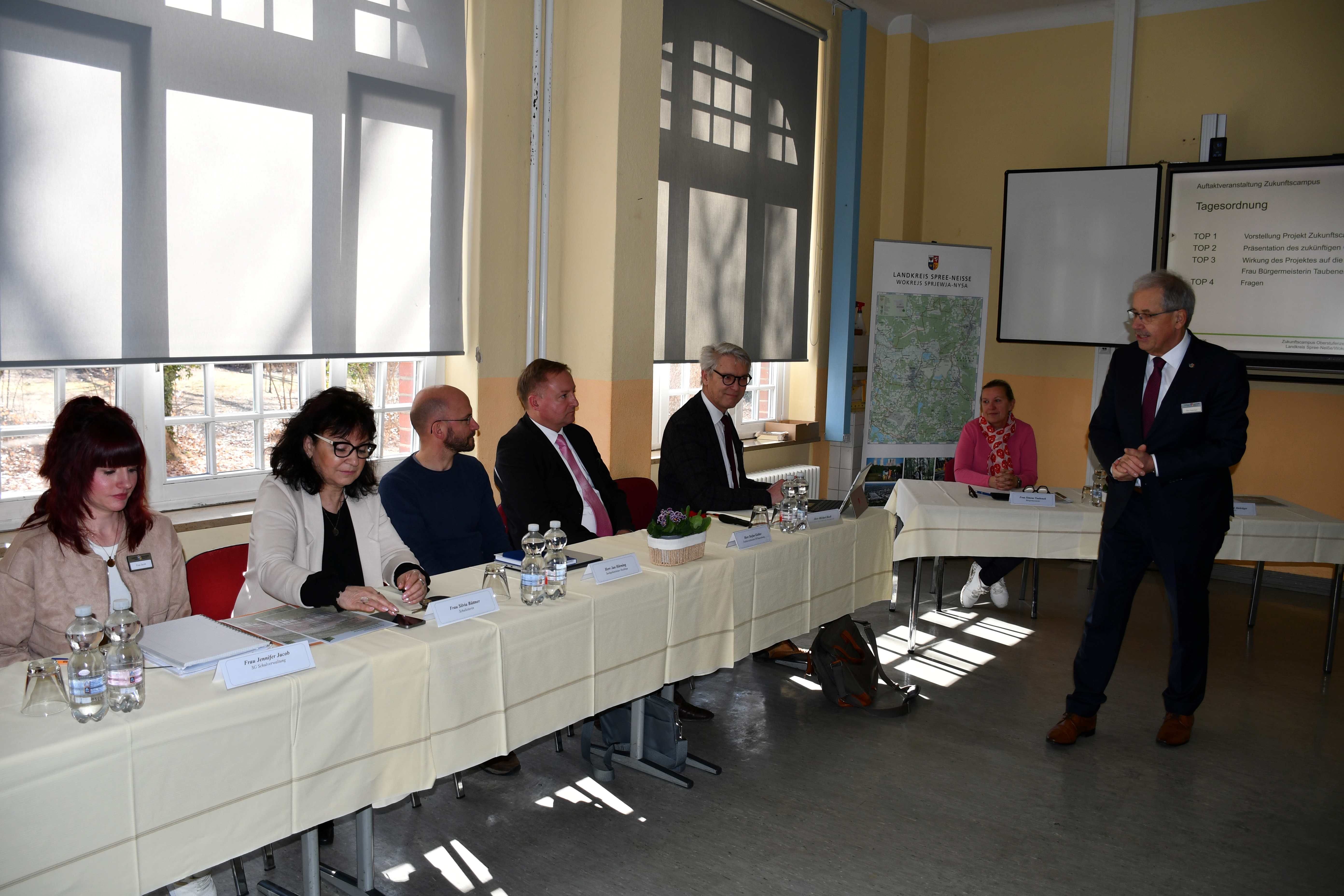 In einem Pressegespräch im Oberstufenzentrum I Spree-Neiße in Forst (Lausitz)/Baršć (Łužyca) ist am 3. März 2026 offiziell der Startschuss für das Bauprojekt „Zukunftscampus Spree-Neiße“ gefallen. Vertreterinnen und Vertreter des Landkreises Spree-Neiße/Wokrejs Sprjewja-Nysa und der Stadt Forst (Lausitz)/Baršć (Łužyca) informierten die anwesenden Medienvertreterinnen und -vertreter über den aktuellen Stand des Großprojektes.
