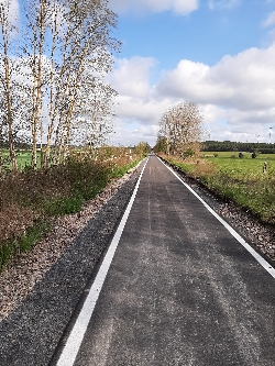 Bei der Herstellung des Radweges wurden ausgebaute Betonschwellen und ein abgebrochenes Brückenbauwerk vor Ort aufbereitet und entsprechend der angestrebten Nachhaltigkeitsziele im Unterbau wieder eingebaut. Die darüber liegende glatte Asphaltschicht ermöglicht Radfahrern und Skatern nun gutes Fahren durch vorwiegend unberührte Natur.